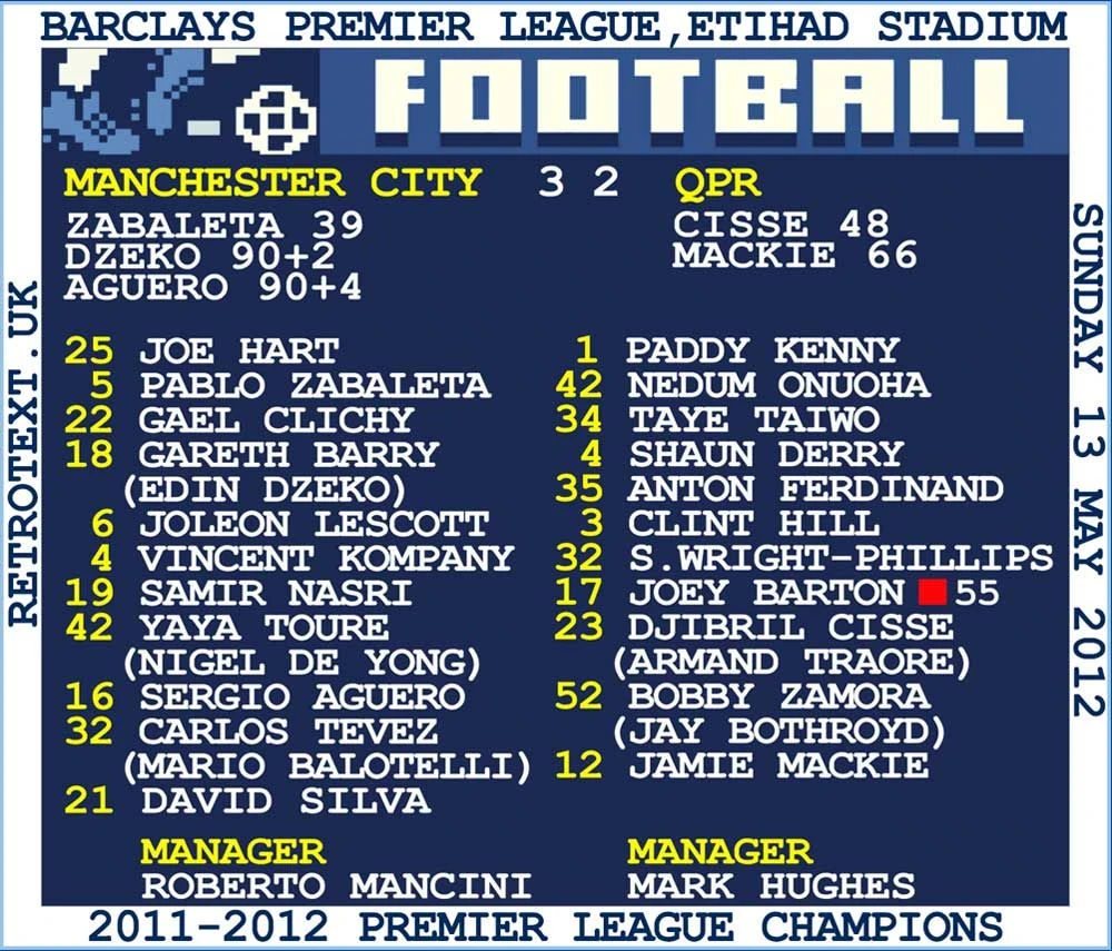 2012 Man City v QPR (Manchester City) Retrotext t-shirt – White