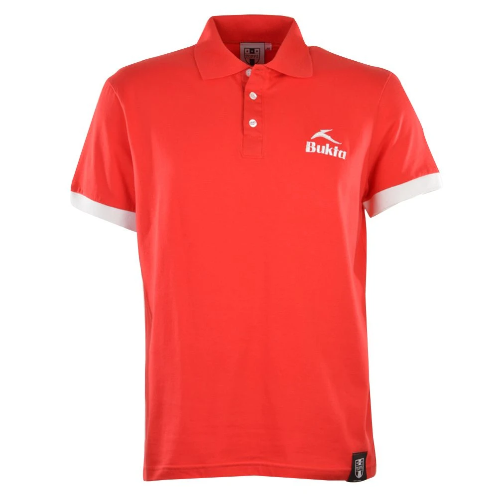 Regular Fit. Embroidered badge. Ribbed collar. Three-button placket. Short sleeves with ribbed armbands.